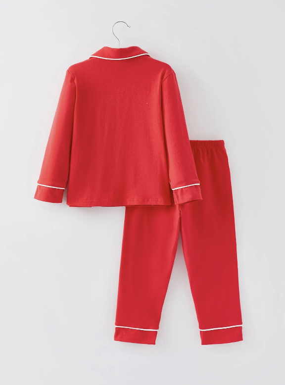 Bring some festive cheer to your little one's bedtime routine with our Christmas Red Boys Embroidered Pajamas. The classic holiday red color and beautiful embroidery make these pajamas stand out. Soft and comfortable, they'll keep your child cozy and stylish all night long. Make this holiday season even more special with our adorable pajama set!